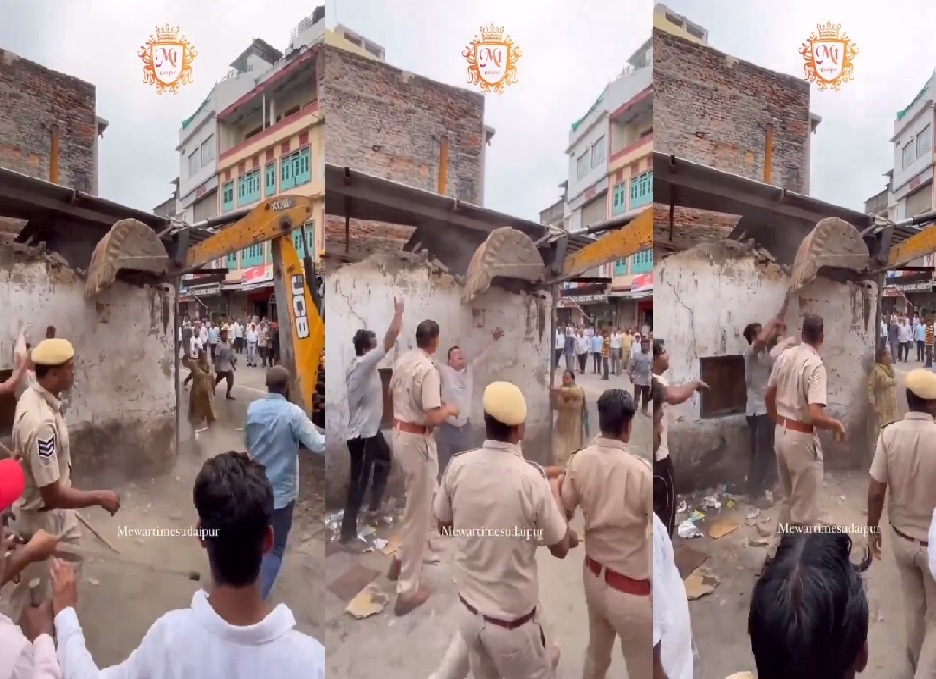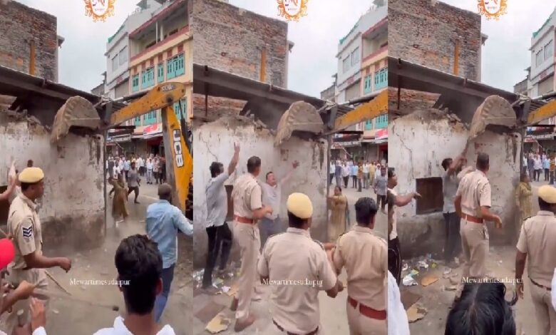 شاهد|عائلة مسلمة في ولاية راجهستان الهندية تحاول وقف هدم منزلها