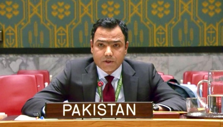 وفي إشارة إلى ما وصفه بالموقف العدواني للهند، قال المبعوث الباكستاني إن نيودلهي دأبت على العمل ضد باكستان في انتهاك للقانون الدولي وميثاق الأمم المتحدة. ودعا الهند إلى الكف الفوري عما وصفه بالإرهاب الذي ترعاه الدولة.