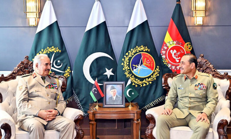 جاء ذلك خلال لقائه برئيس وزراء حكومة ليبيا الدكتور أسامة سعد حماد، والقائد العام للقوات المسلحة العربية الليبية المشير خليفة أبو القاسم حفتر، في مقر القيادة العامة للقوات المسلحة في روالبندي. وشهد اللقاء تبادلاً معمقاً لوجهات النظر حول التطورات الإقليمية والدولية، مع تركيز خاص على الأوضاع الأمنية والتحديات التي تواجه المنطقتين.