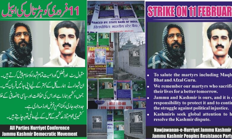 وفي الوقت نفسه، ظهرت ملصقات مرة أخرى في مناطق مختلفة من جامو وكشمير التي تحتلها الهند، تحث الناس على الالتزام بإغلاق كامل في 11 فبراير، ذكرى استشهاد الزعيم الكشميري البارز محمد مقبول بوت.