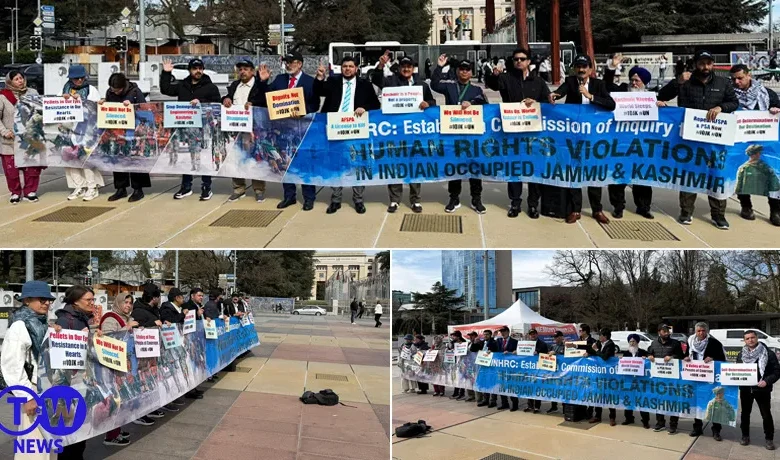 نظم وفد كشميري مظاهرة احتجاجية حاشدة أمام مقر الأمم المتحدة في جنيف، حثّ فيها المجتمع الدولي على الاضطلاع بدور أكثر فاعلية في حل نزاع كشمير المستمر منذ أمد طويل،