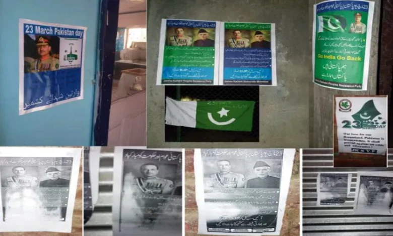 ظهرت ملصقات تحمل علم باكستان مجدداً في جامو وكشمير المحتلة