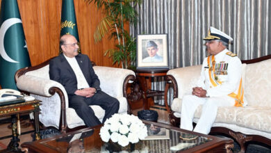 الرئيس زرداري يبحث مع قائد البحرية شؤون الدفاع