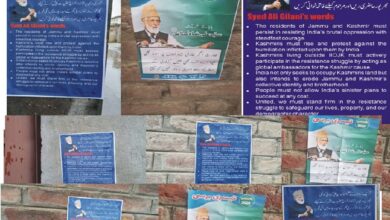 ملصقات تدعو الكشميريين لتكريم السيد علي جيلاني وزيارة مقبرته